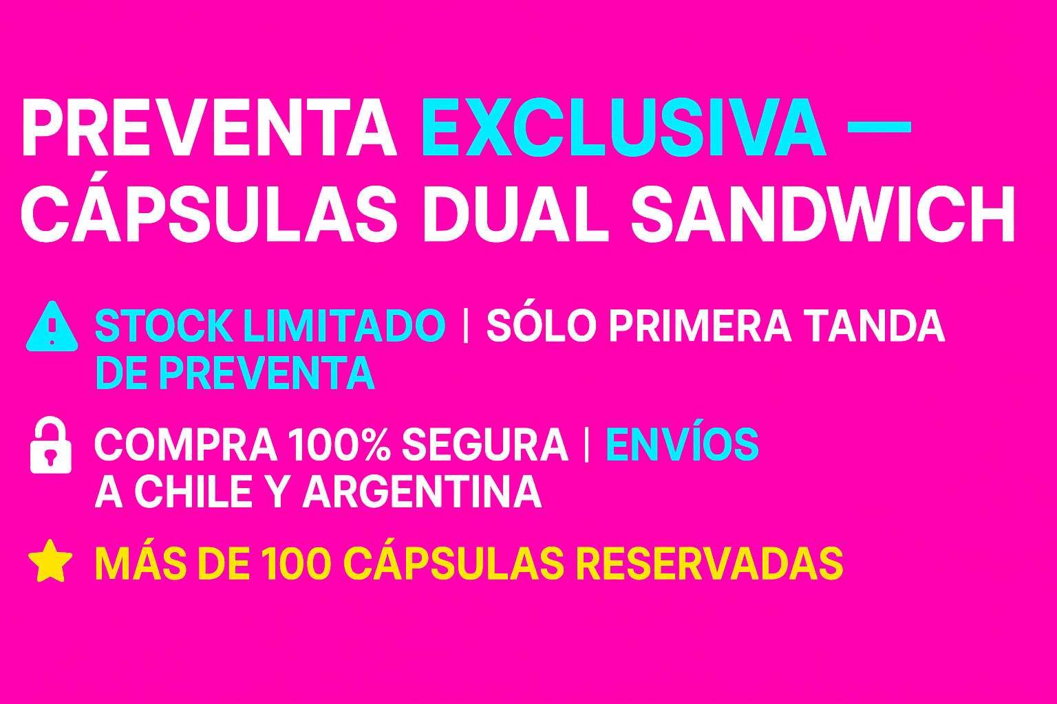 📦 Cupos limitados — este lote se agota rápido.🛒 Comprá ahora tus cápsulas Dual Sandwich y asegurá tu lugar en la preventa.